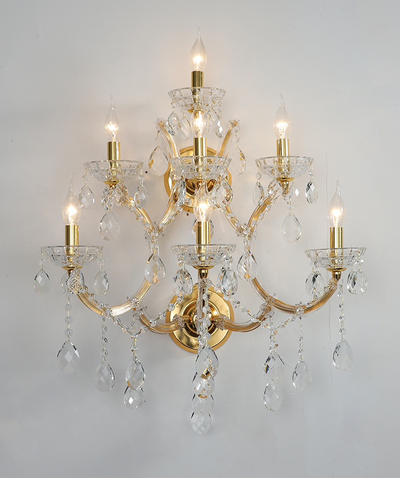 This crystal Wall lamp pearl shaped crystal chain crystal chandelier integrates the retro candle shape into the chandelier design, bringing a romantic retro style. At the same time, it is matched with retro colors to make the lamp body more textured. Crystal embellishment adds a romantic feeling.